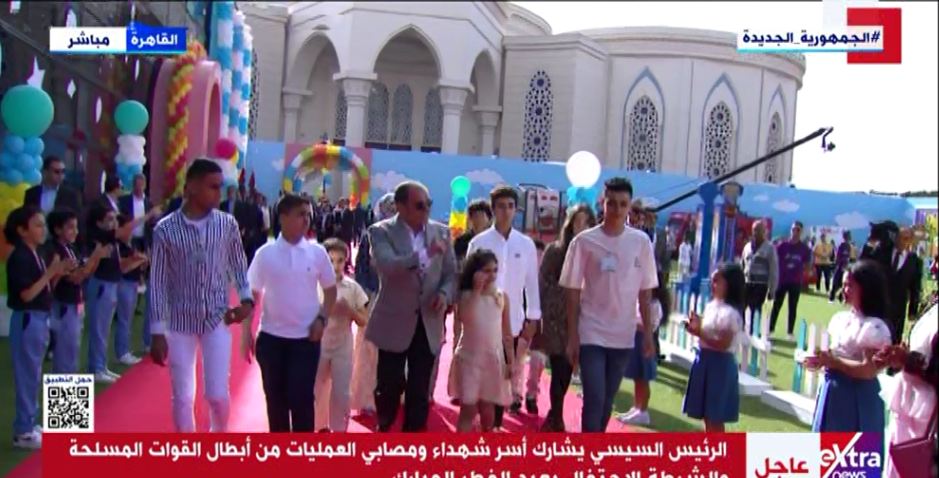 اصطحب الرئيس عبد الفتاح السيسي، أبناء الشهداء للاحتفال بعيد الفطر المبارك، بمركز المنارك بمنطقة التجمع الخامس.