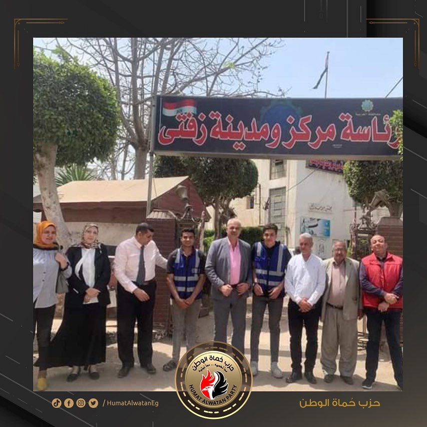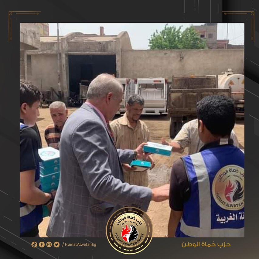 وفي سياق أخر منفصل، قامت أمانة شئون العضوية بمركز زفتى بمحافظة الغربية بتقديم الهدايا وكعك العيد لعمال حملة النظافة بمجلس مدينة زفتى، وذلك بحضور اللواء أحمد يحي وكيل لجنة الدفاع والأمن القومي بمجلس النواب، وأمين المحافظة، احتفالاً بالعيد فى جو ملئ بالبهجة والسعادة، وذلك بناءً على توجيهات الفريق جلال الهريدى رئيس الحزب.