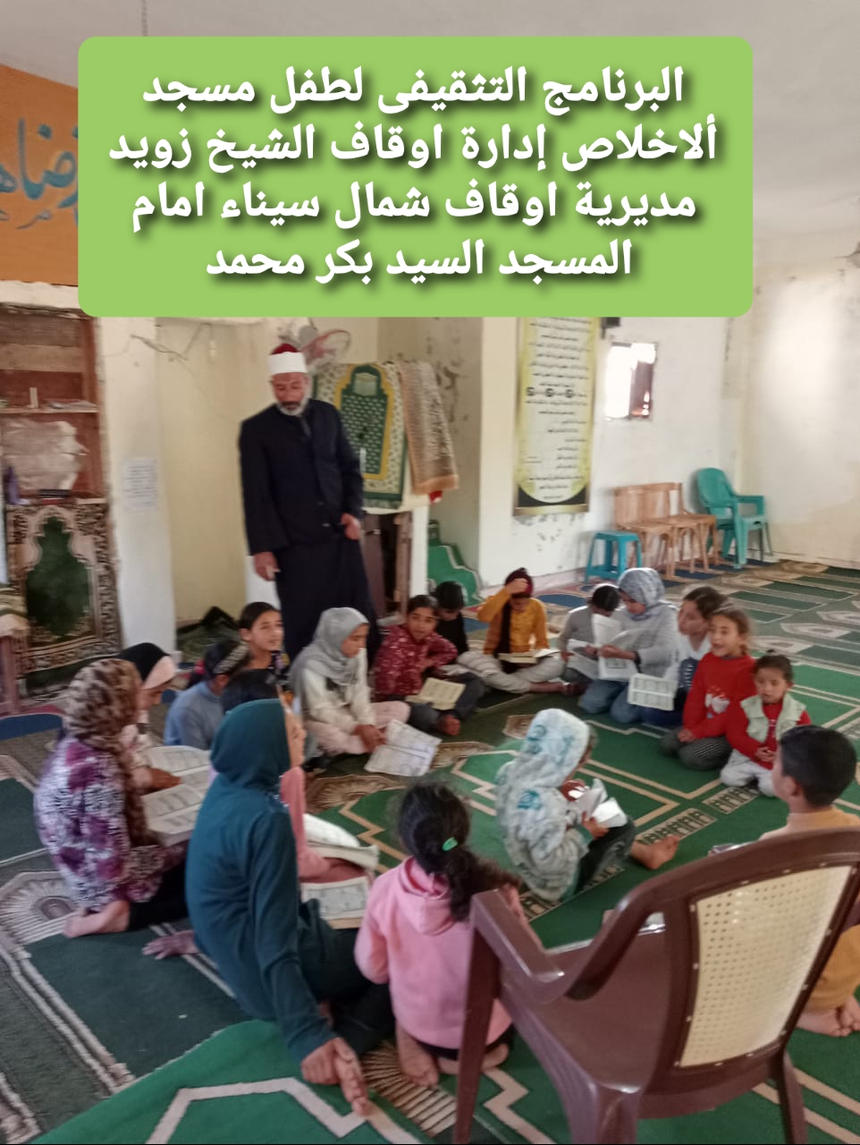 احتضنت مساجد شمال سيناء، أطفال المحافظة في عطلة عيد الفطر المبارك، وذلك من خلال عقد عدد من الأنشطة التثقيفية بالمساجد التي شهدت مواصلة أئمة الأوقاف فعاليات البرنامج التثقيفي للطفل.