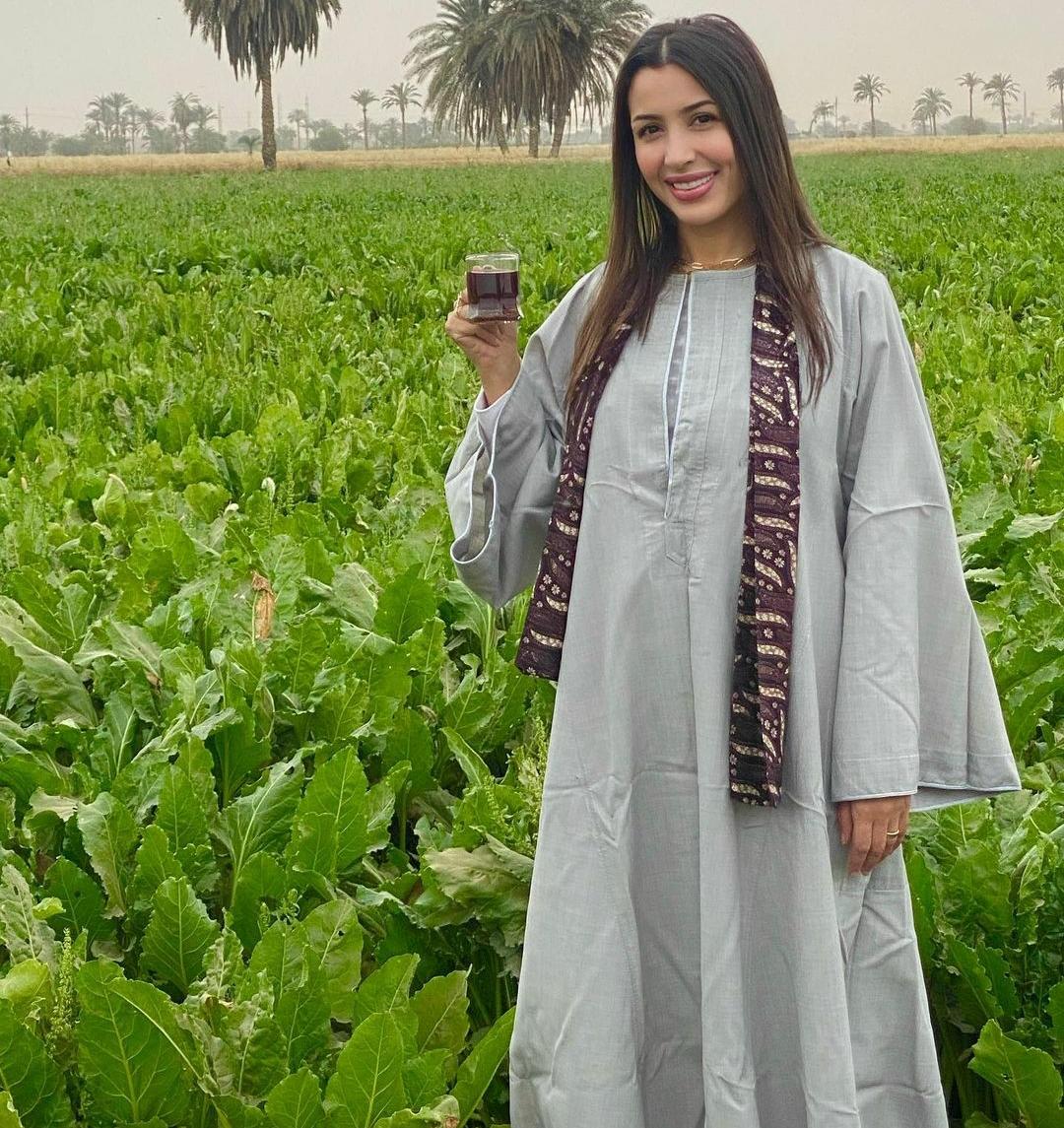 وظهرت جنات في الصور وهي ترتدي جلباب صعيدي وسط أرض زراعية، ممسكة بكوب من الشاي، وعلقت عليها قائلة: “كل عام وأنتم بخير، العيد مستمر في الصعيد”.