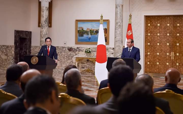 انعكست تصريحات الرئيس السيسي إيجابا على صعيد تقوية وتمتين العلاقات المشتركة مع العملاق الياباني، حيث تكتسب زيارة فوميو كيشيدا، رئيس الوزراء الياباني، لمصر أهمية كبيرة، كونها تستهدف تعزيز العلاقات الثنائية المتميزة بين البلدين، وبحث حالة السلم والأمن على المستويين الدولي والإقليمي.