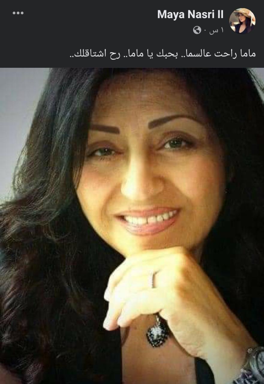 ونشرت مايا نصري صورة لوالدتها، وعلقت عليها قائلة: "ماما راحت عالسما.. بحبك يا ماما.. رح اشتاقلك"، وبعدها انهالت عليها تعليقات التعزية والمواساة من جمهورها ومتابعيها.