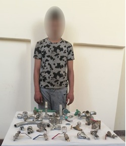تمكنت الأجهزة الأمنية بالقاهرة من ضبط (أحد الأشخاص - مقيم بدائرة القسم) حال سيره بدائرة قسم شرطة الموسكى وبحوزته (عدد من مقابض خلاطات ومحابس المياه "مــجهولة المصـــدر") وبمواجهته عن مصدرهــــا إعترف بسرقتها من داخل دورة مياه إحدى المدارس كائنة بدائرة القسم بأسلوب "التسلق".. وبسؤال (عامل بالمدرسة) تعرف على المضبوطات ، وإتهمه بالسرقة.