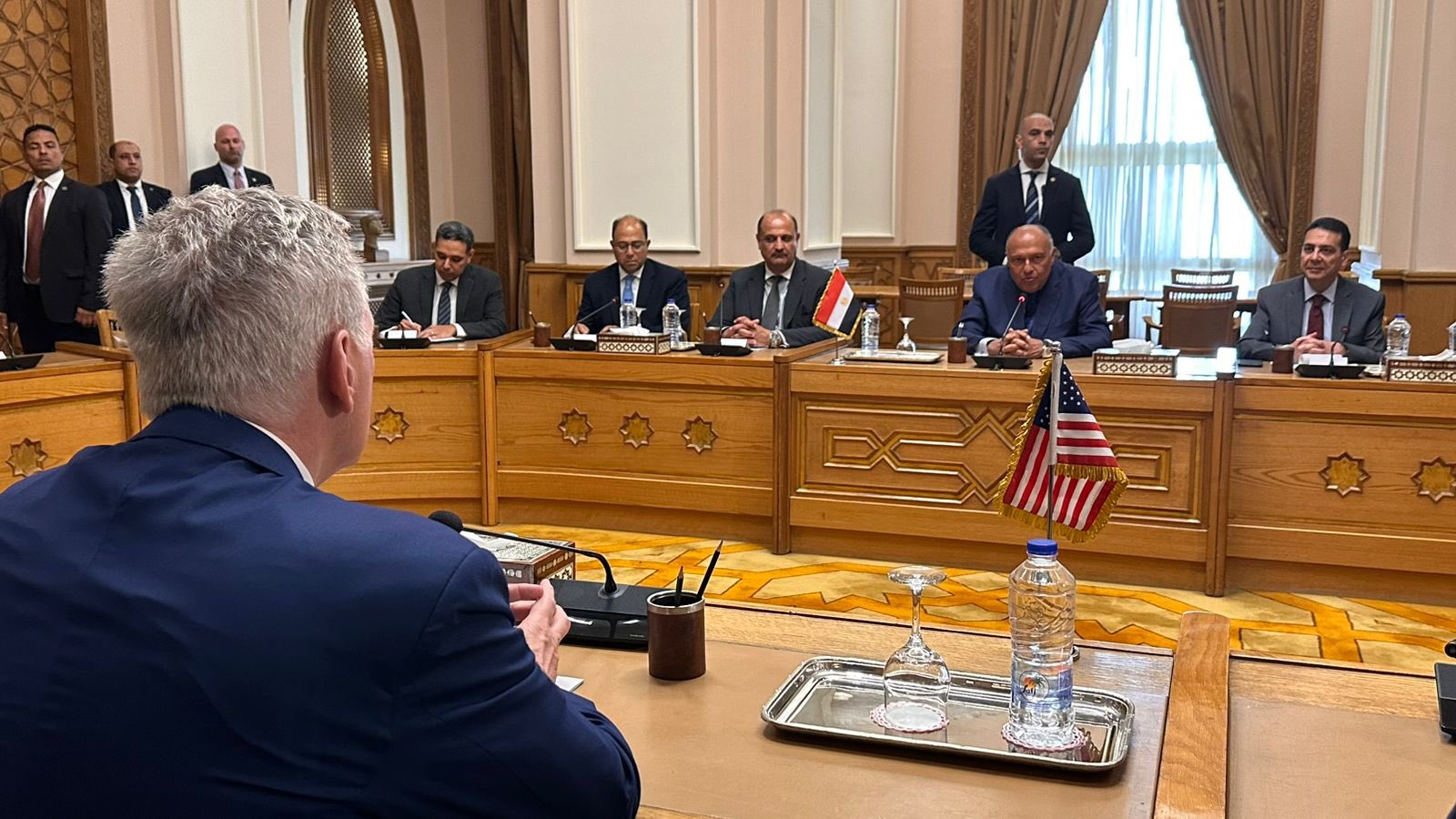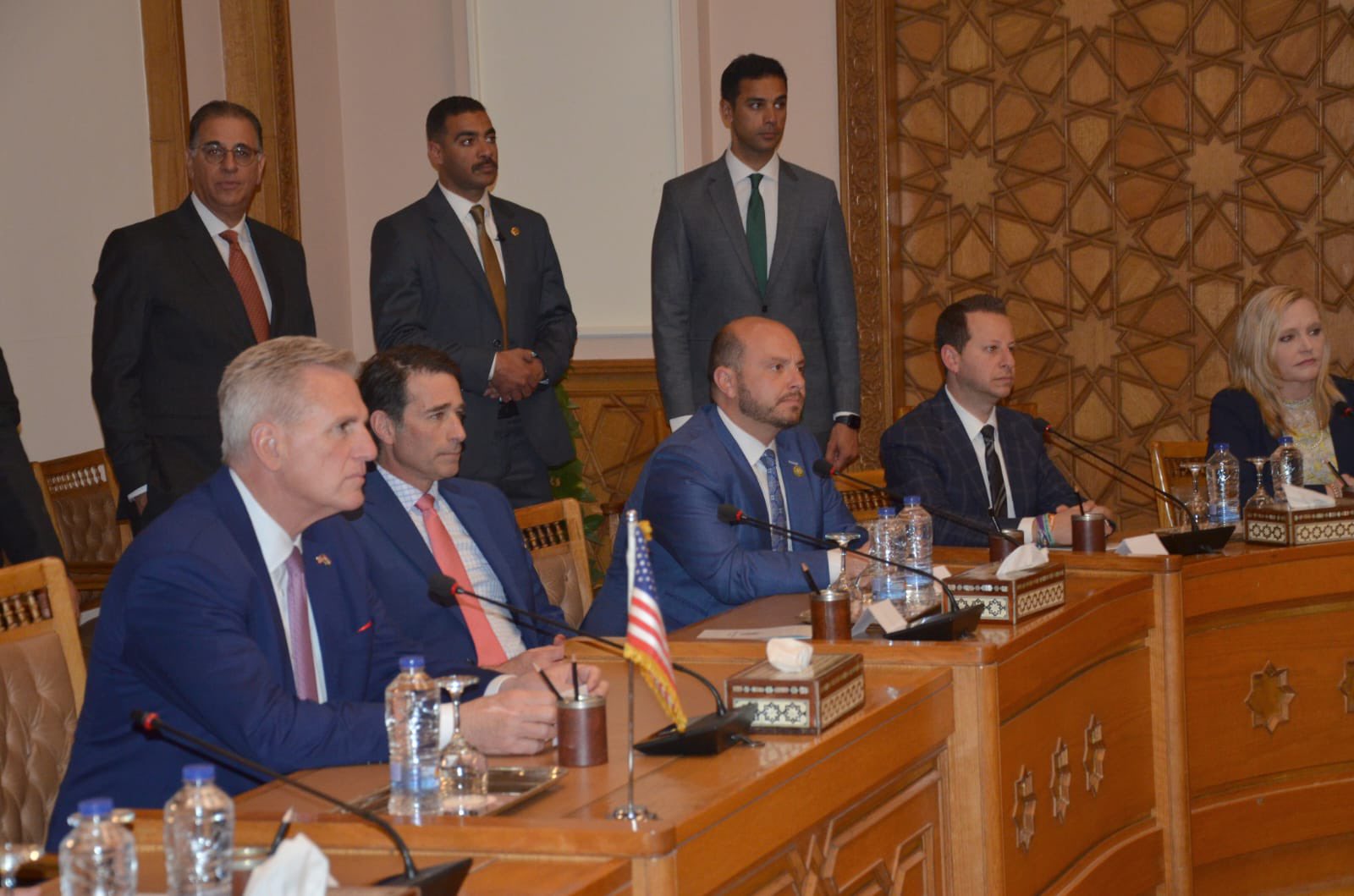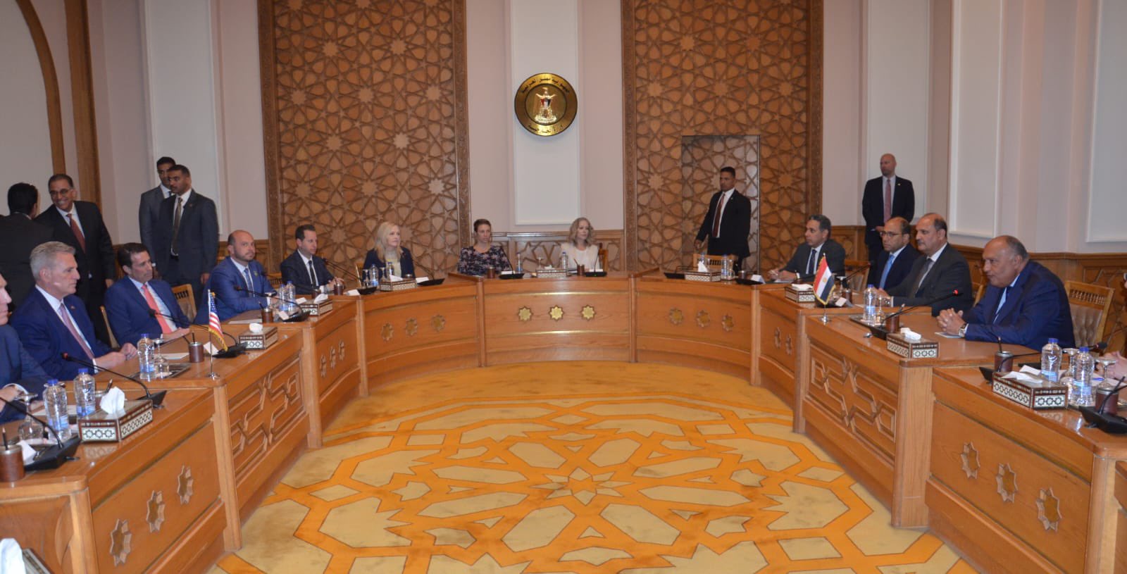 وقال السفير أحمد أبو زيد المتحدث باسم الخارجية المصرية عبر تويتر:" تنعقد الآن جلسة المباحثات بين وفدي مصر والكونجرس الأمريكي، برئاسة وزير الخارجية سامح شكري وكيفين مكارثى رئيس مجلس النواب الأمريكي، لبحث مختلف جوانب العلاقات الثنائية والقضايا الإقليمية والدولية".