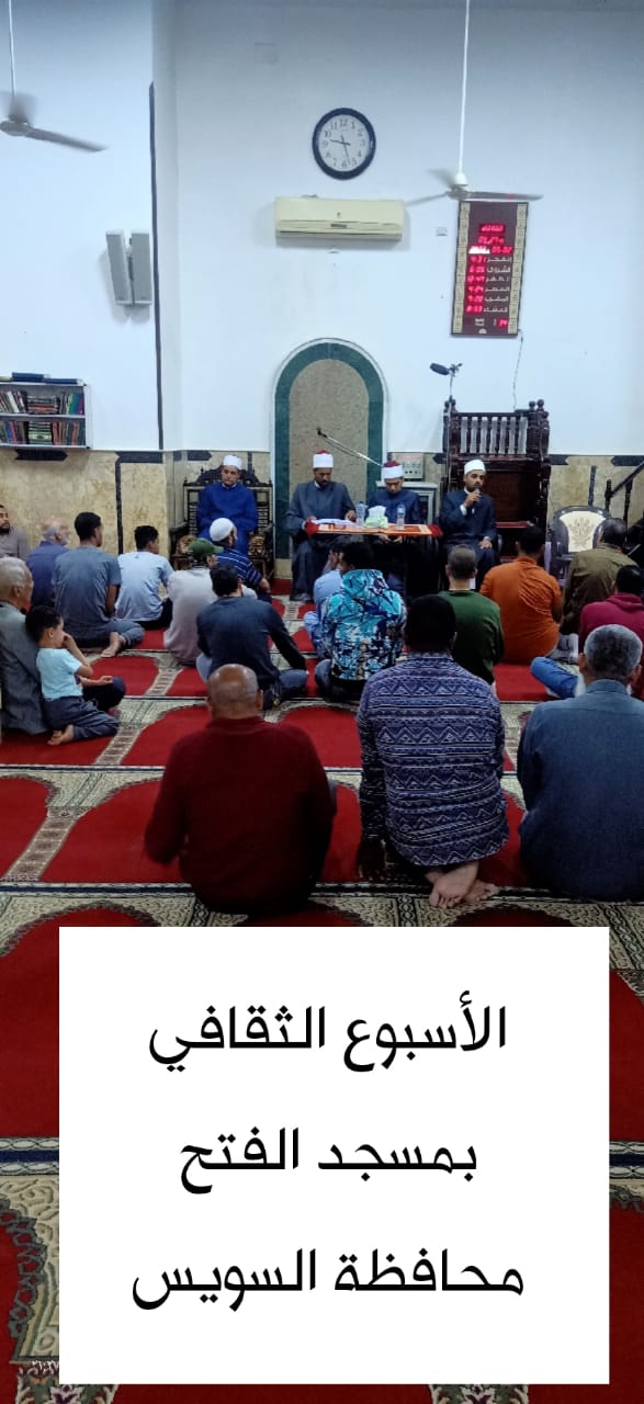 26- وفي محافظة السويس أقيم الأسبوع الثقافي بمسجد الفتح.
