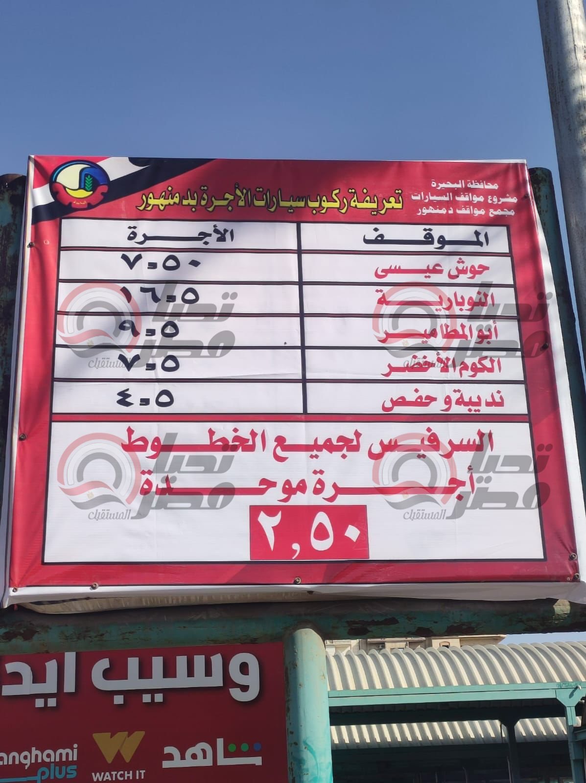 إلتزام السائقين العاملين على الخطوط المختلفة بتعريفة الركوب المقررة وعلى أن يتم الإعلان عن التعريفة في مكان واضح بجميع مواقف السيارات بدائرة المحافظة وتشديد الرقابة للإلتزام بها وكذا الإلتزام بعدد الركاب المقرر وخطوط السير المرخص بها لكل سيارة.