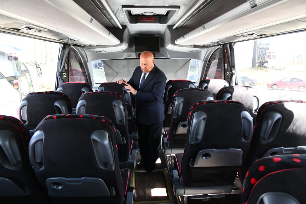 وزير النقل يتفقد اصطفافا لأتوبيسات نقل الركاب بالساحة الخارجية بالحي الحكومي بالعاصمة الإدارية الجديدة