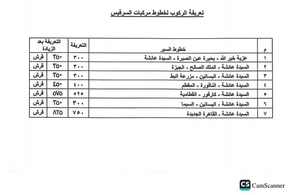 ننشر قائمة زيادة تعريفة ركوب السرفيس بالقاهرة الكبرى