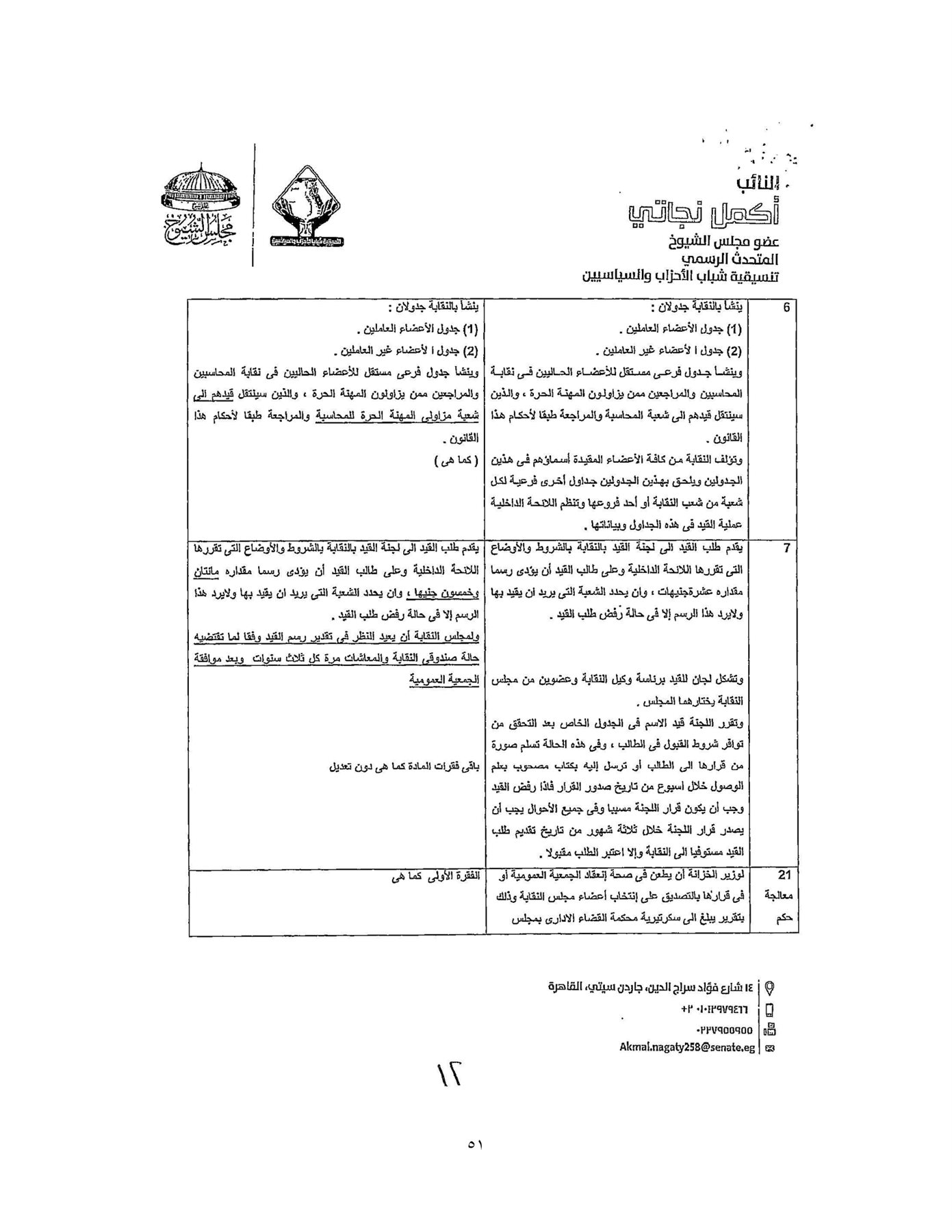 تقرير نائب التنسيقية أكمل نجاتى بشأن الأثر التشريعى لقانون نقابة التجاريين..«مستند»