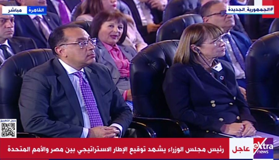 شهد الدكتور مصطفى مدبولى، رئيس مجلس الوزراء، اليوم الثلاثاء، توقيع الإطار الاستراتيجى بين جمهورية مصر العربية والأمم المتحدة، للتعاون من أجل التنمية المستدامة للفترة من 2023 إلى 2027.