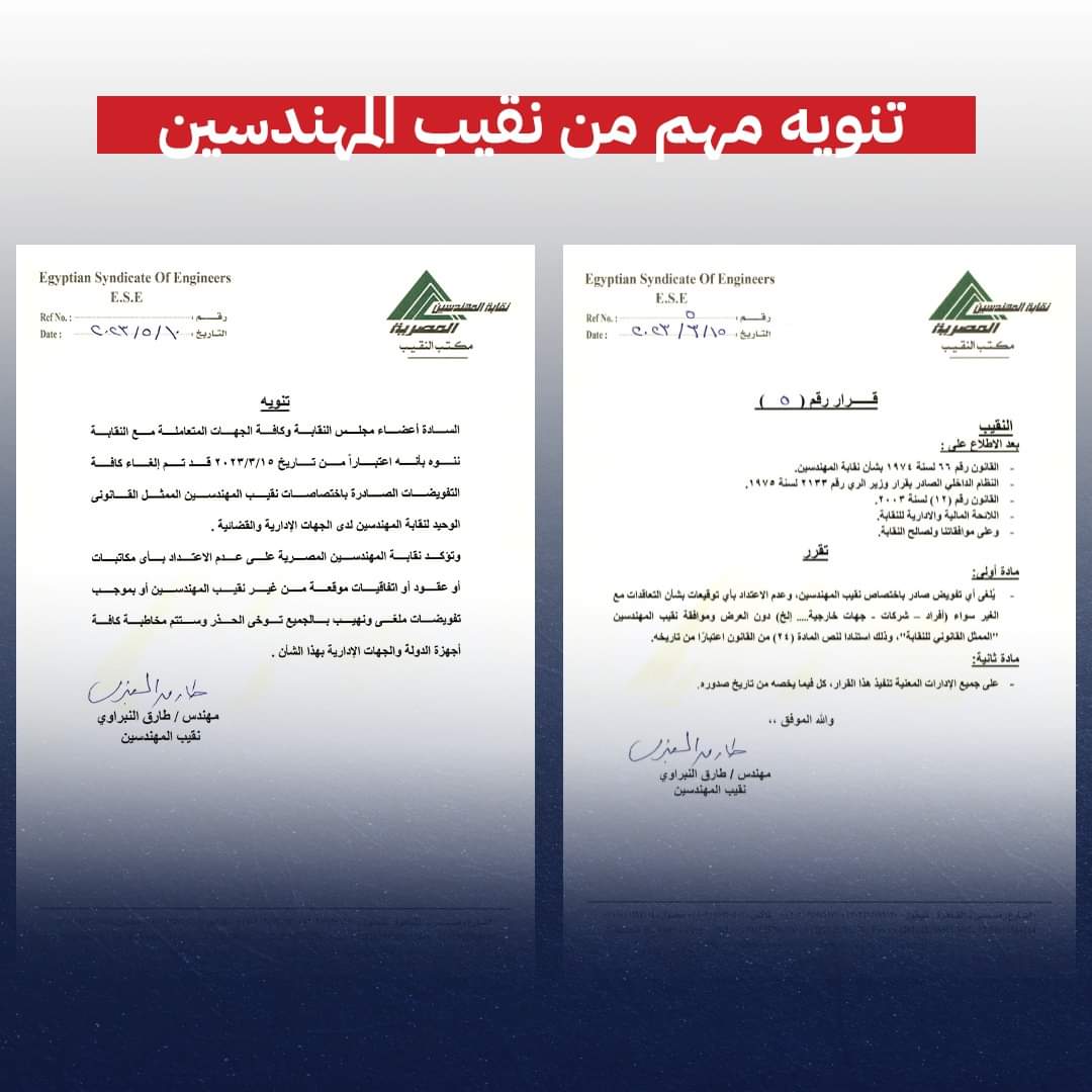 علقّ وكيل نقابة المهندسين الدكتور حسام رزق، على قرار نقيب المهندسين طارق النبراوي،بتأجيل الدعوة لانعقاد مجلس نقابة المهندسين بتاريخ 13-5-2023 لحين مراجعة الاجراءات القانونية في هذا الشأن وتحديد موعد آخر.
