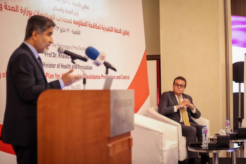 جاء ذلك خلال فعاليات إطلاق الخطة التنفيذية لمكافحة المقاومة لمضادات الميكروبات بوزارة الصحة، بحضور الدكتور أحمد المنظري المدير الإقليمي لمنظمة الصحة العالمية لشرق المتوسط، وممثل الصحة العالمية بمصر، وعدد من قيادات وزارة الصحة، ووكلاء الوزارء ومديريات الشؤون الصحية بالمحافظات، بالإضافة إلى الأطباء المعنيين بالشأن الوقائي والعلاجي.