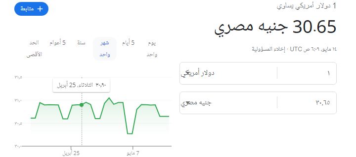 سجل سعر صرف الدولار اليوم الاحد 14 مايو الجارى فى بنك مصر نحو مستوى 30.75 جنيه للشراء، 30.85 جنيه للبيع