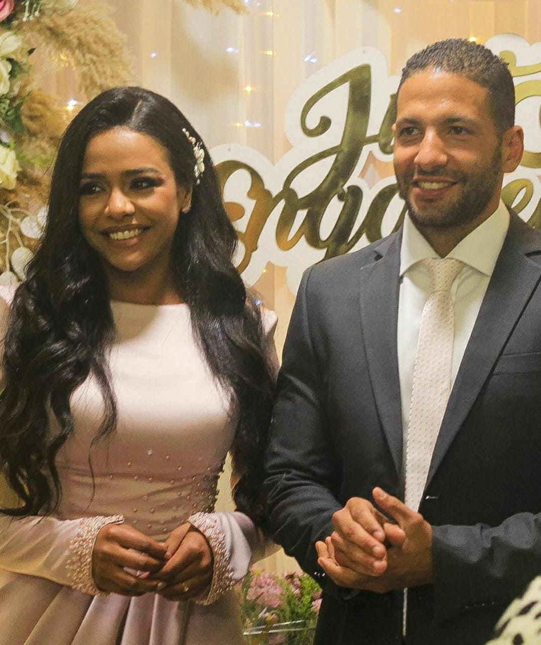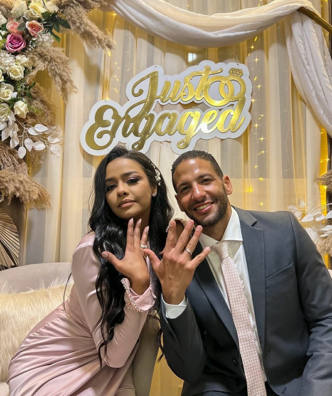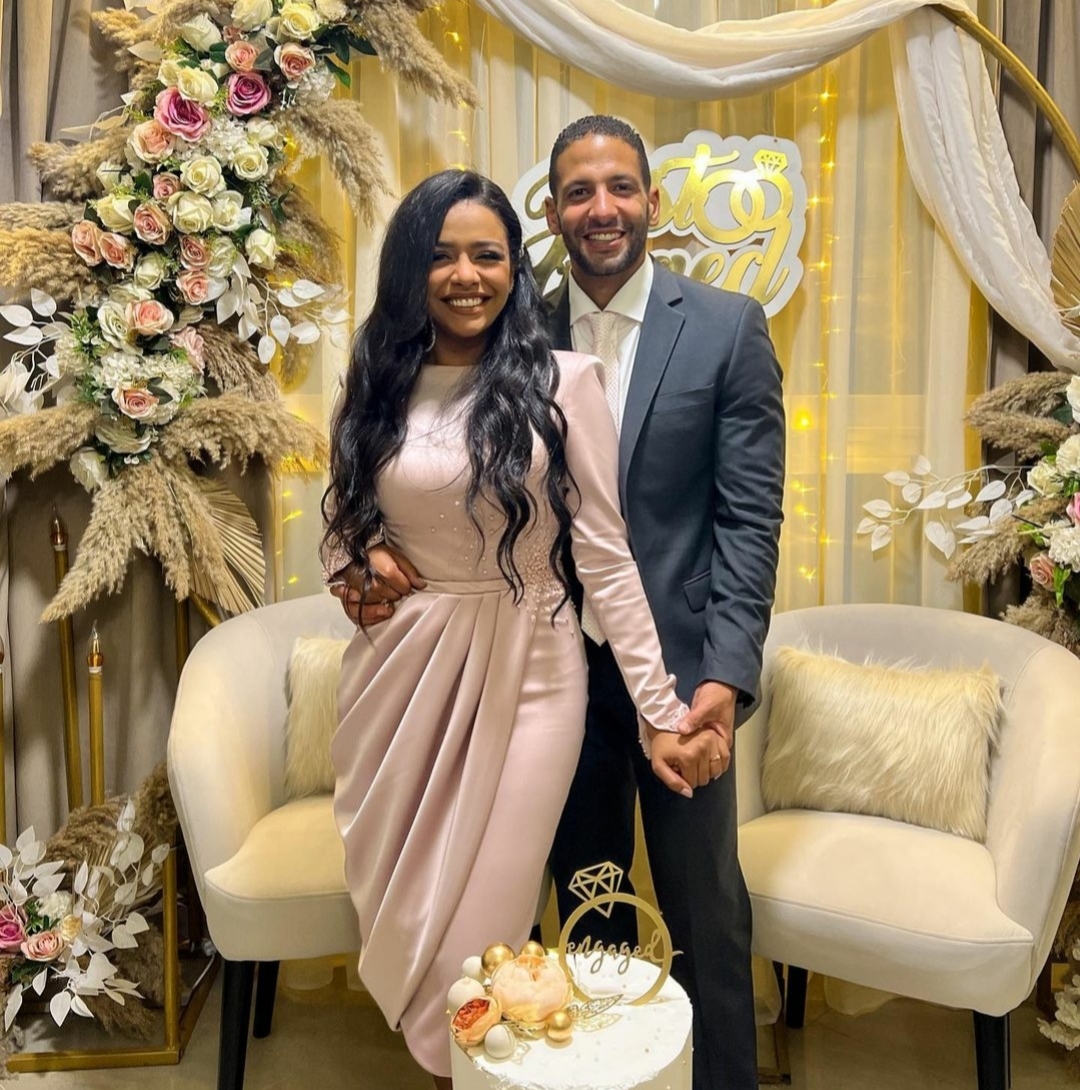 حيث ظهرت وهي تحتفل بالخطوبة جانب عريسها في أجواء عائلية وحفل محدود، وارتدت الفنانة في خطوبتها فستانًا بسيطًا باللون البيج، مع تسريحة شعر بسيطة ومكياج خفيف.