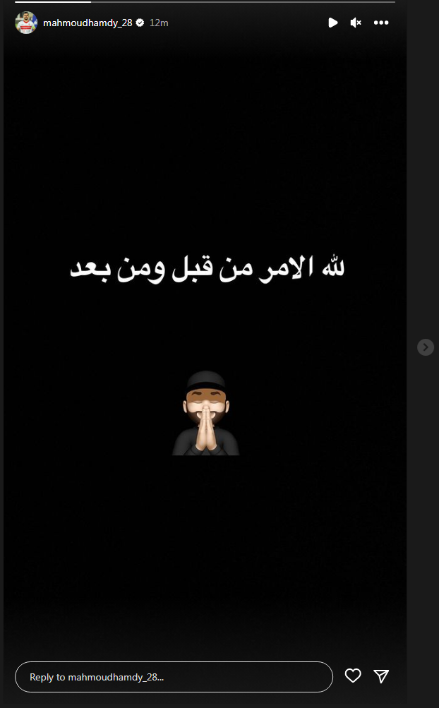 وكتب محمود الونش لاعب الزمالك عبر حسابه الرسمي"إنستجرام" معلقاً:" لله الأمر من قبل ومن بعد".