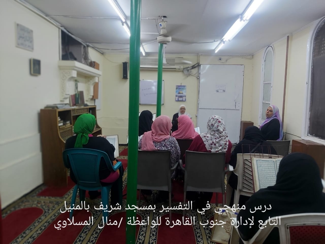 وعقد الدرس المنهجي من مسجد شباب أهل الجنة بالقاهرة الجديدة، للواعظة عبير أنور محمد خيري، في مادة التفسير وعلوم القرآن، وعقد الدرس المنهجي من مسجد ريتاج بالتجمع الخامس في القاهرة، للواعظة فاطمة محمد عبدالمنعم، في مادة التفسير وعلوم القرآن.