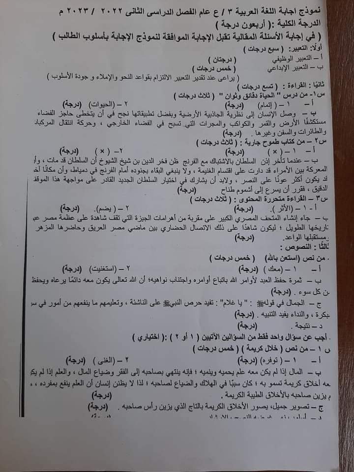 نموذج إجابة امتحان الدراسات الاجتماعية للصف الثالث الإعدادى