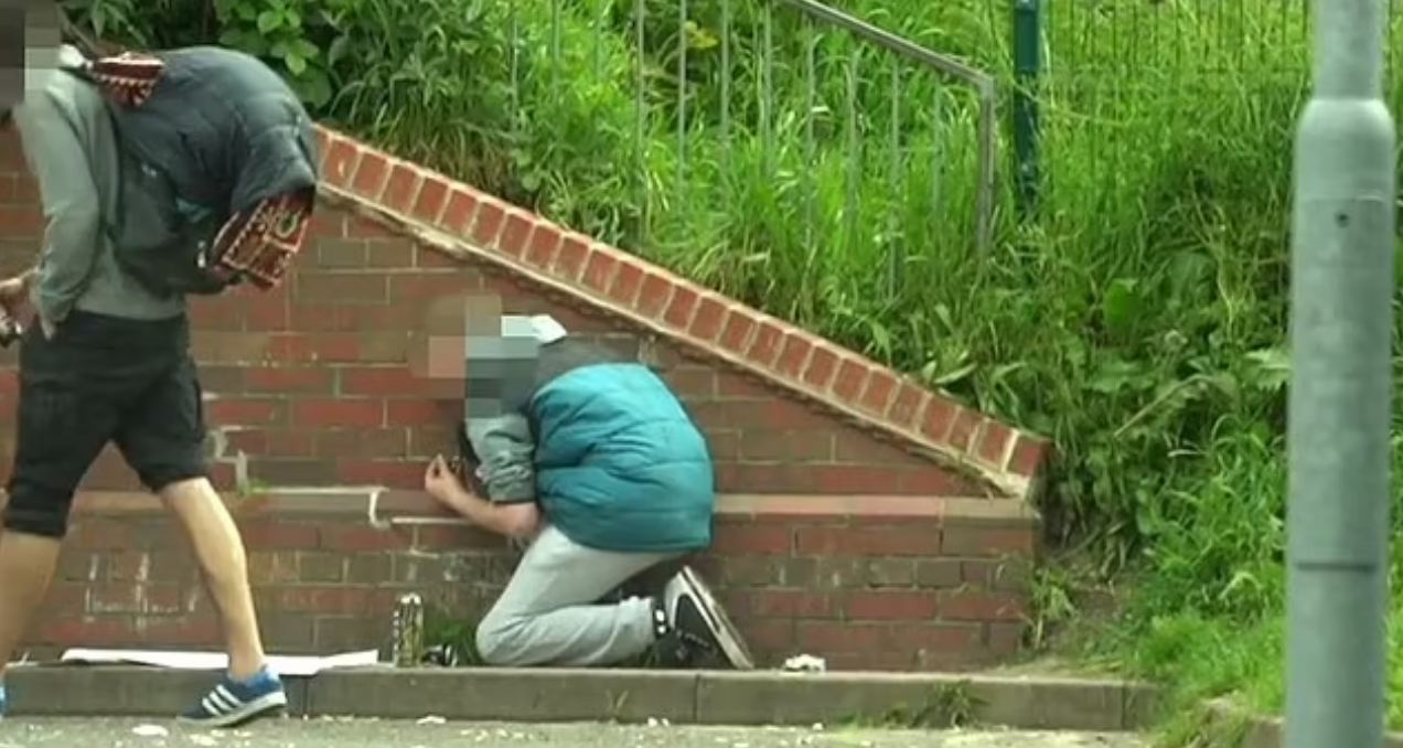 وعلي بعد ثلاثة اميال في حي "هانلي"، تم تصوير مدمن أخر يتقيأ ثلاث مرات في حديقة في منتصف فترة ما بعد الظهر.