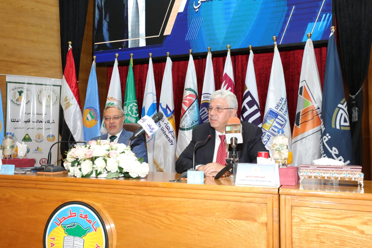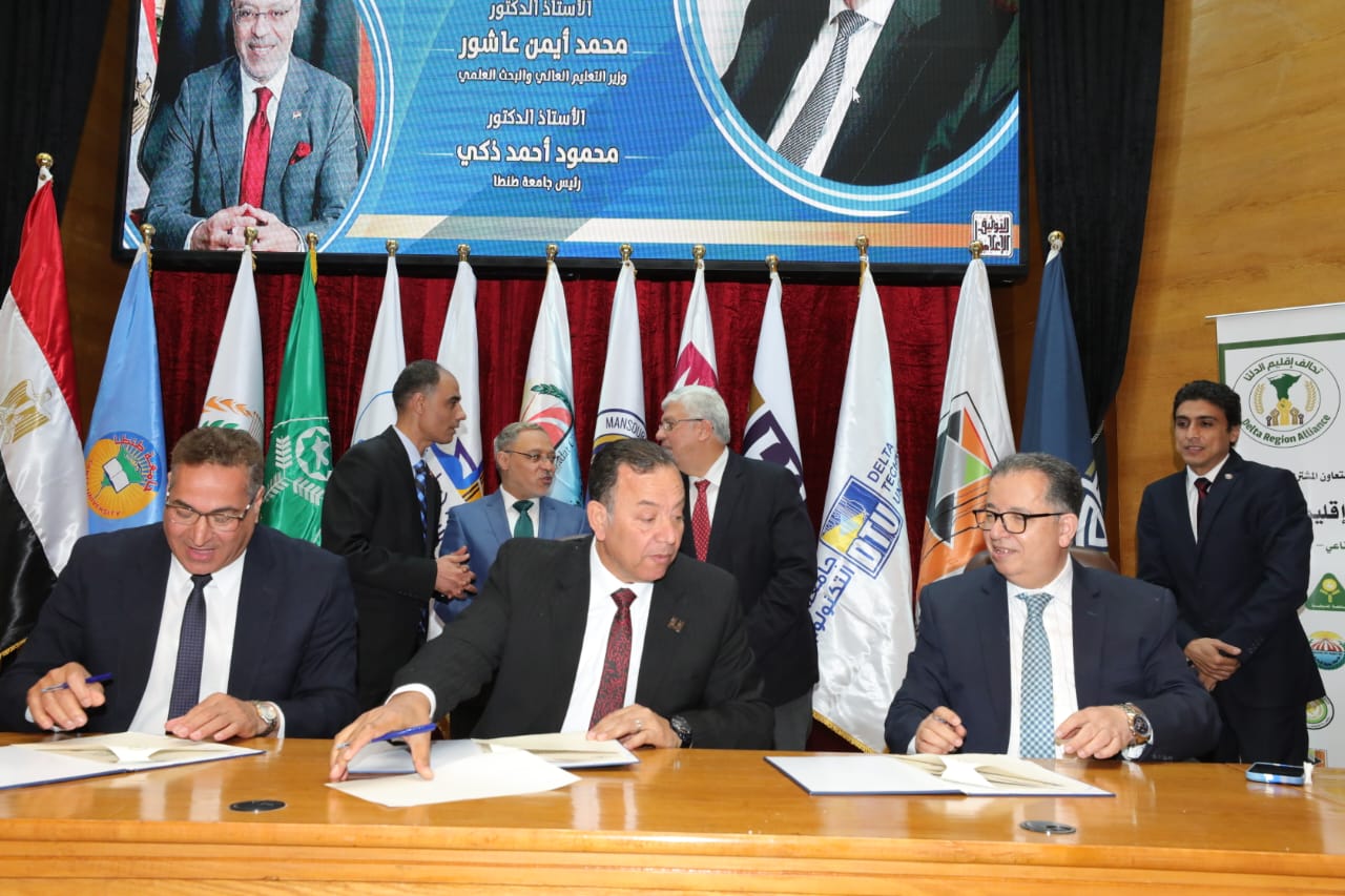 شهد الدكتور أيمن عاشور وزير التعليم العالي والبحث العلمي، توقيع بروتوكول تعاون لعقد تحالف مشترك، يعد الأكبر من نوعه على المستوى العلمي والبحثي والصناعي والاستثماري، بين المؤسسات الأكاديمية والإنتاجية بإقليم الدلتا، ويضم التحالف ١٤ جامعة حكومية وأهلية وتكنولوجية وخاصة، وهى جامعات: (طنطا، والمنصورة، والمنوفية، وكفرالشيخ، ودمياط، ومدينة السادات، والمنصورة الأهلية، والمنصورة الجديدة، والمنوفية الأهلية، والدلتا للعلوم والتكنولوجيا، وحورس، والدلتا التكنولوجية، وسمنود التكنولوجية، والسلام الخاصة)، وممثلين عن اتحاد الصناعات المصرية "فرع دمياط الجديدة"، ومن القطاع الخاص؛ شركة انطلاق لتقنية الاتصالات والمعلومات، وشركة طنطا موتورز، وشركة سنابل الخير للحلول الزراعية.