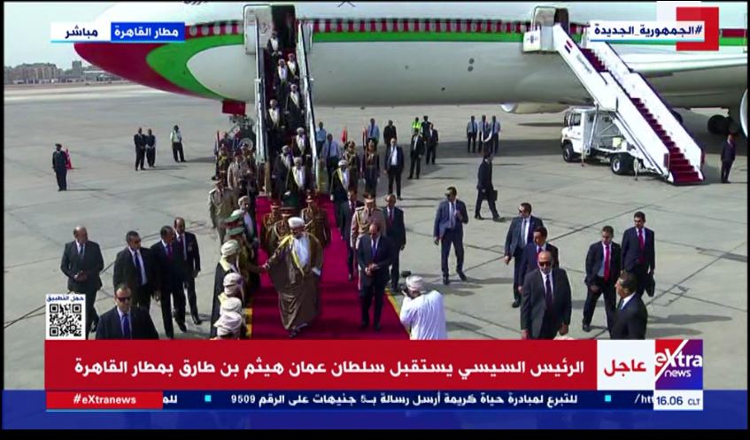 الرئيس السيسي يستقبل سلطان عمان بمطار القاهرة