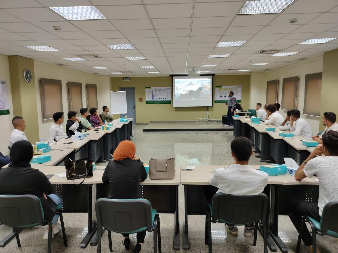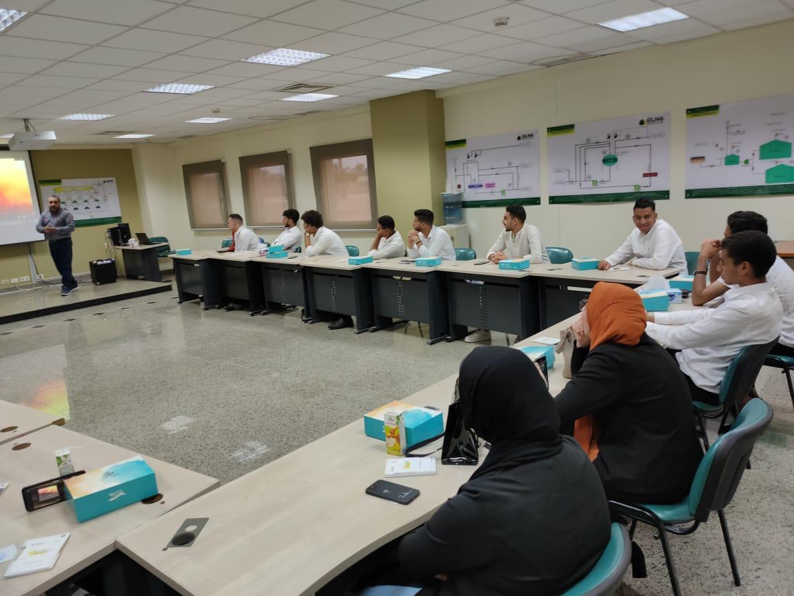 ثم بدأت الزيارة بإلقاء ٣ محاضرات استهلت بمحاضرة عن نظرة عامة على مجال الغاز الطبيعي والاستثمارات الخاصة به واعقبها محاضرة عن أنظمة الـsaftey وأهميتها بمواقع البترول والغاز وأهمية الالتزام بتعليمات الامن والسلامة بالموقع، واختتمت القاء بمحاضرة عن محطة الاسالة بالمصنع ومكوناتها حيث تعرف الطلاب على أجزاء المحطة وأهمية كل جزء فيها.