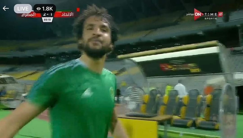 محمود علاء يعتدي على مصور مباراة الاتحاد والمصري بعد طرده (صور)