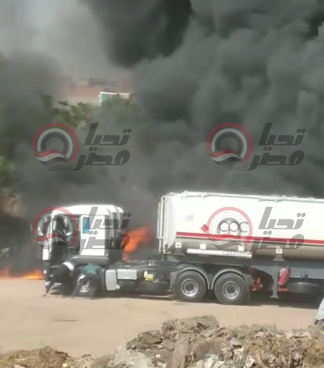 حريق هائل في سيارات وقود بـ القليوبية
