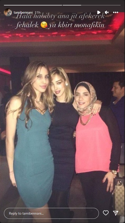 ونشرت تامي بناني صورة لها برفقة بسمة بوسيل وهالة عمر عبر حسابها بموقع تبادل الصور والفيديوهات انستجرام وعلقت: هالة حبيتي كنت عايزة افكرك بحالك، بقيتي كبيرة المنافقين.