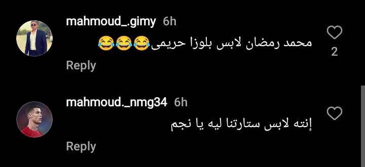 وجاءت تعليقات الجمهور على تلك الإطلالة: “محمد رمضان لابس بلوزة حريمي”، “انت لابس ستارتنا ولا اي يانجم"، وغيرها من التعليقات المماثلة.