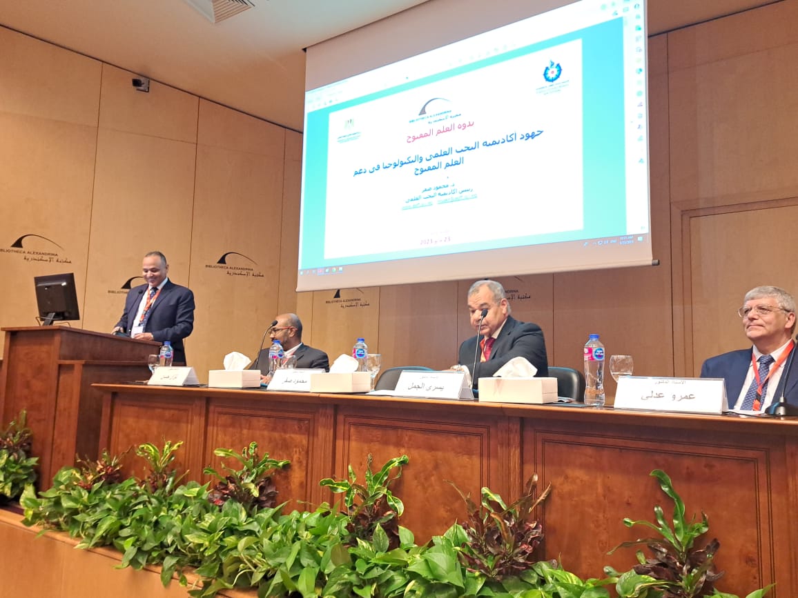 واختتم رئيس أكاديمية البحث العلمي والتكنولوجيا، كلمته أن مجابهة التحديات الراهنة المعقدة من صراعات جيوسياسية وتغيرات مناخية وحروب وكوراث طيعية يستلزم أكثر من أي وقت مضى العلم المفتوح.