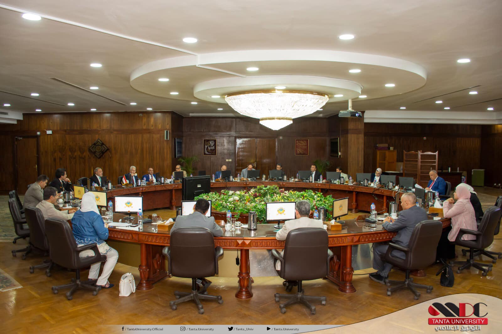 انعقد الاجتماع الدوري لمجلس جامعة طنطا برئاسة الدكتور محمود ذكي رئيس جامعة طنطا، وبحضور الدكتور فؤاد هراس رئيس جامعة طنطا الأسبق وعضو مجلس الجامعة، والدكتور كمال عكاشة نائب رئيس الجامعة لشئون الدراسات العليا والبحوث، والدكتور محمد حسين نائب رئيس الجامعة لشئون التعليم والطلاب، والدكتور محمود سليم نائب رئيس الجامعة لشئون خدمة المجتمع وتنمية البيئة، وعمداء الكليات، والمستشار خيري عمارة المستشار القانوني للجامعة، والمحاسب أحمد رشاد أمين عام الجامعة.
