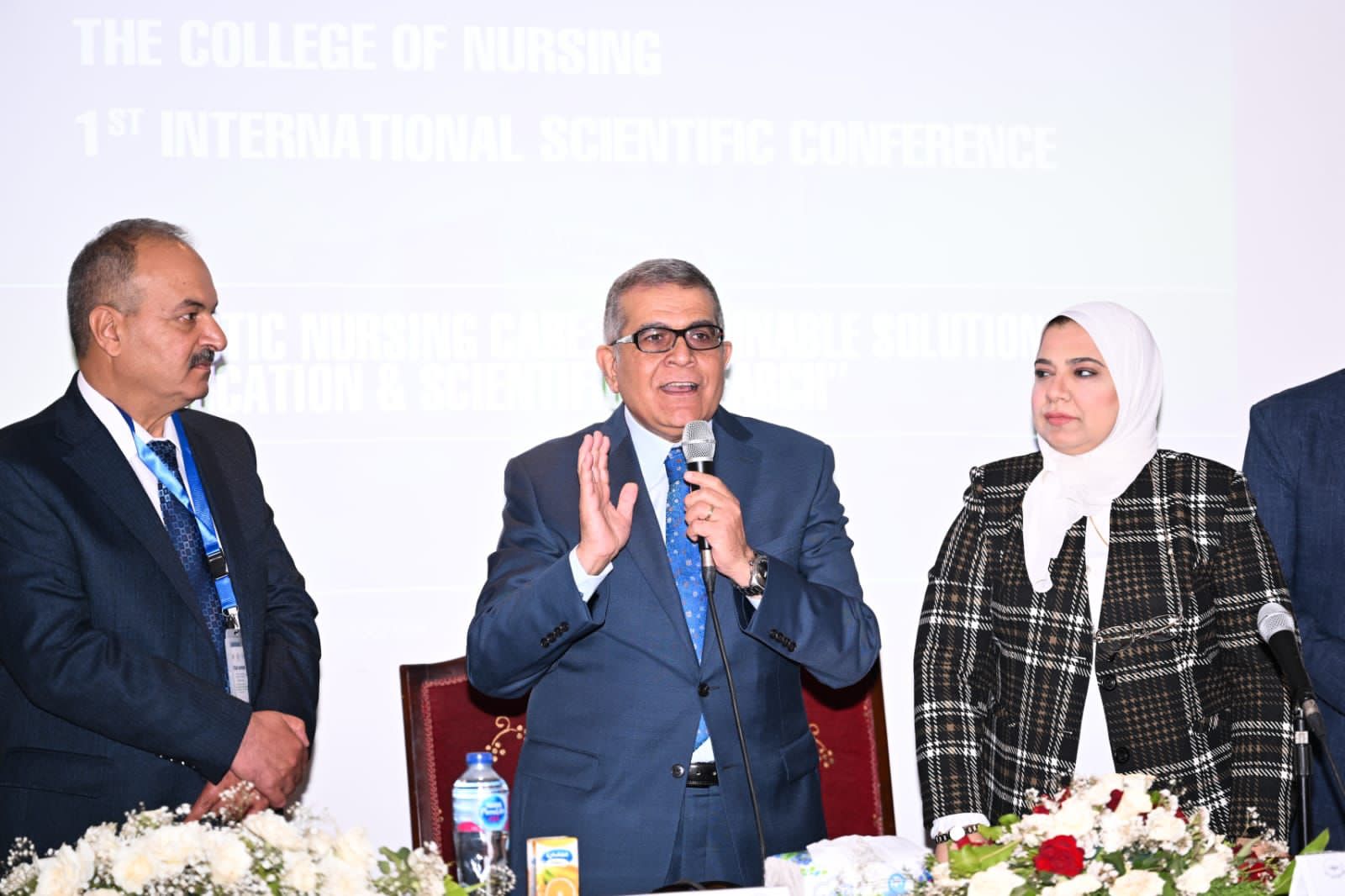وقال الدكتور أشرف حيدر رئيس جامعة مصر للعلوم والتكنولوجيا، إن المؤتمر العلمى الدولى الأول شمل على أكثر من محور مهم، منها المستشفيات الخضراء وتعزيز الرعاية الصحية الشاملة، ودور البحث العلمى فى تحقيق أهداف التنمية المستدامة المتعلقة بالصحة، والتحول الرقمى فى التعليم التمريضي، وتطبيقات الذكاء الإصطناعي في مهنة التمريض.