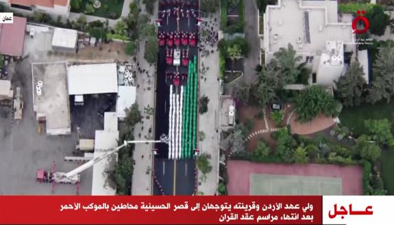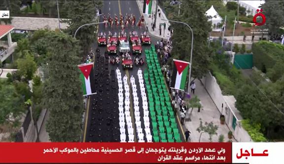 ولي عهد الأردن وقرينته يتوجهان لقصر الحسينية محاطين بالموكب الأحمر