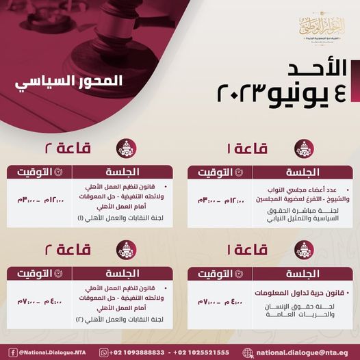 جلسات المحور السياسي الأحد 4 يونيو