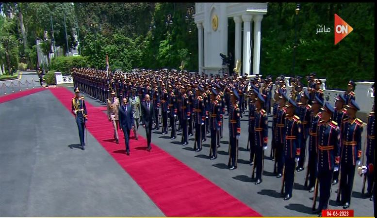 وكان في استقباله الرئيس عبد الفتاح السيسي، حيث عزف النشيد الوطني للبلدين، واستعراض حرس الشرف.
