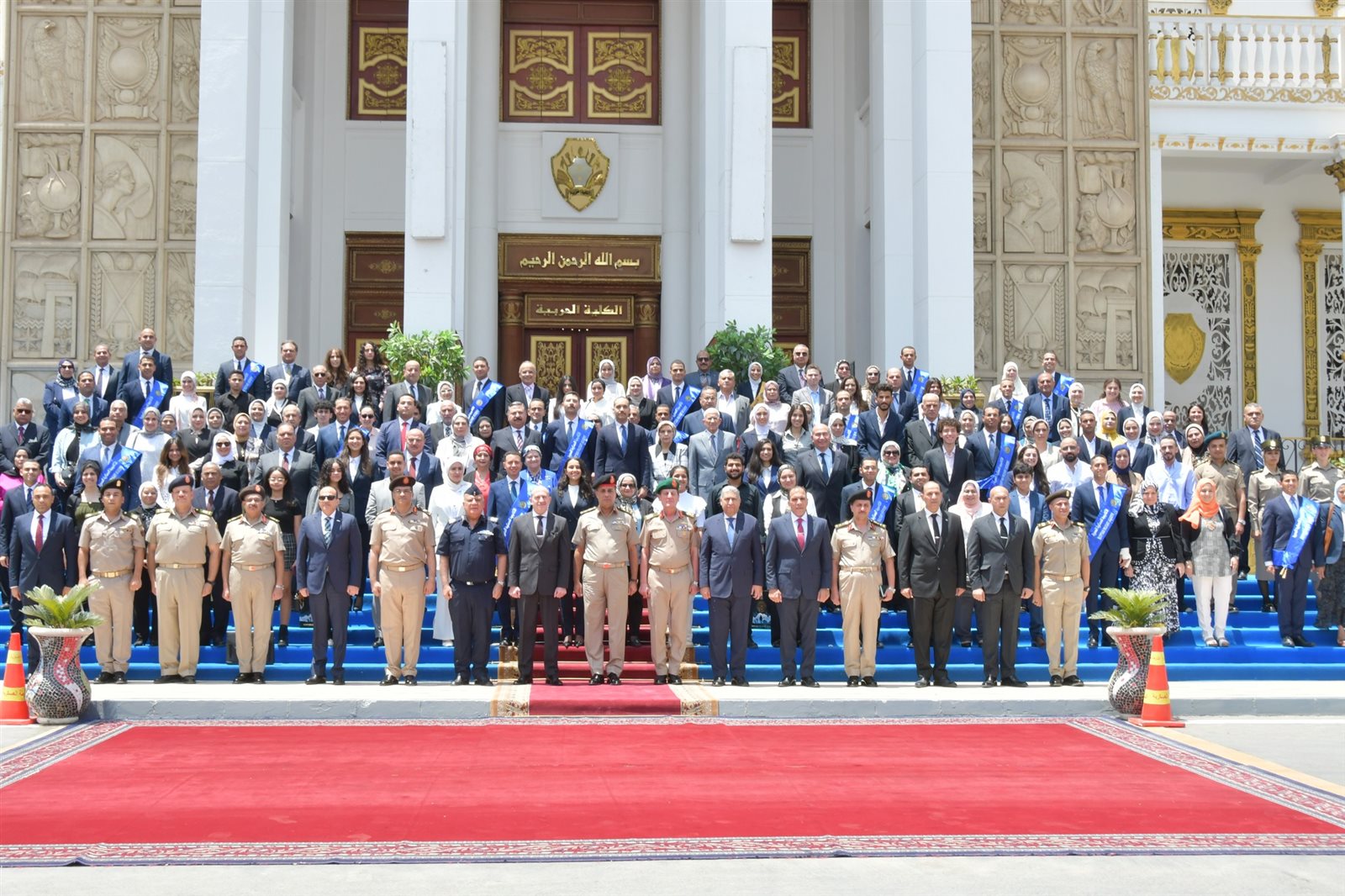 حضر الإحتفالية اللواء أح / خالد شوقى مساعد وزير الدفاع للكليات العسكرية والمهندسة غادة لبيب نائب وزير الإتصالات وتكنولوجيا المعلومات والدكتورة رشا راغب المدير التنفيذى للأكاديمية الوطنية للتدريب وعدد من أعضاء هيئة التدريس بالأكاديمية العسكرية المصرية العليا وعدد من مسئولى هيئة الرقابة الإدارية .