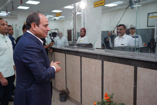 وقال الرئيس السيسي: "هل الموظفين والعاملين راضيين على المعدات والتكنولوجيا والإمكانيات الموجودة؟ وهل بتسهل الشغل عليكم"، فأجاب الموظفين بـ"نعم"، ليتابع الرئيس قائلا: "فى النهاية إحنا عاملين ده علشان الناس وأنتو موجودين هنا علشان خدمة الناس وتسهيل مصالحكم، ولو فيه حاجة قولولي".