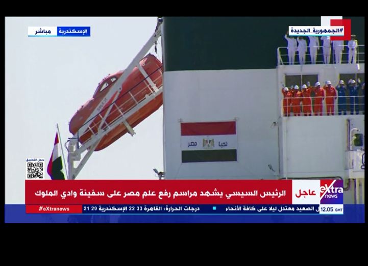 الرئيس السيسي يرفع العلم المصري على سفينة وادي الملوك بميناء الإسكندرية