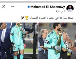 ونشر الشناوي، صورًا من تتويجه ببطولة دوري أبطال إفريقيا، عبر حسابه الرسمي بموقع التواصل الاجتماعي “ فيس بوك”، وعلق قائلًا: “ جمعة مباركة في حضور الأميرة السمراء”.