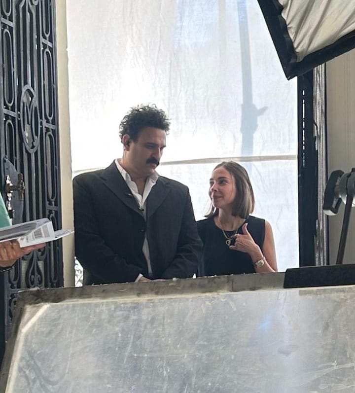 وظهر خلال الصور الفنان بيومي فؤاد رفقة الفنان أكرم حسني والممثلة السعودية فاطمة البنوي، وظهر أكرم حسني في صورة أخرى بملامح غريبة تكشف عن شخصيته في العمل، حيث ظهر ببدلة سوداء وشعر منكوش، وشنب.
