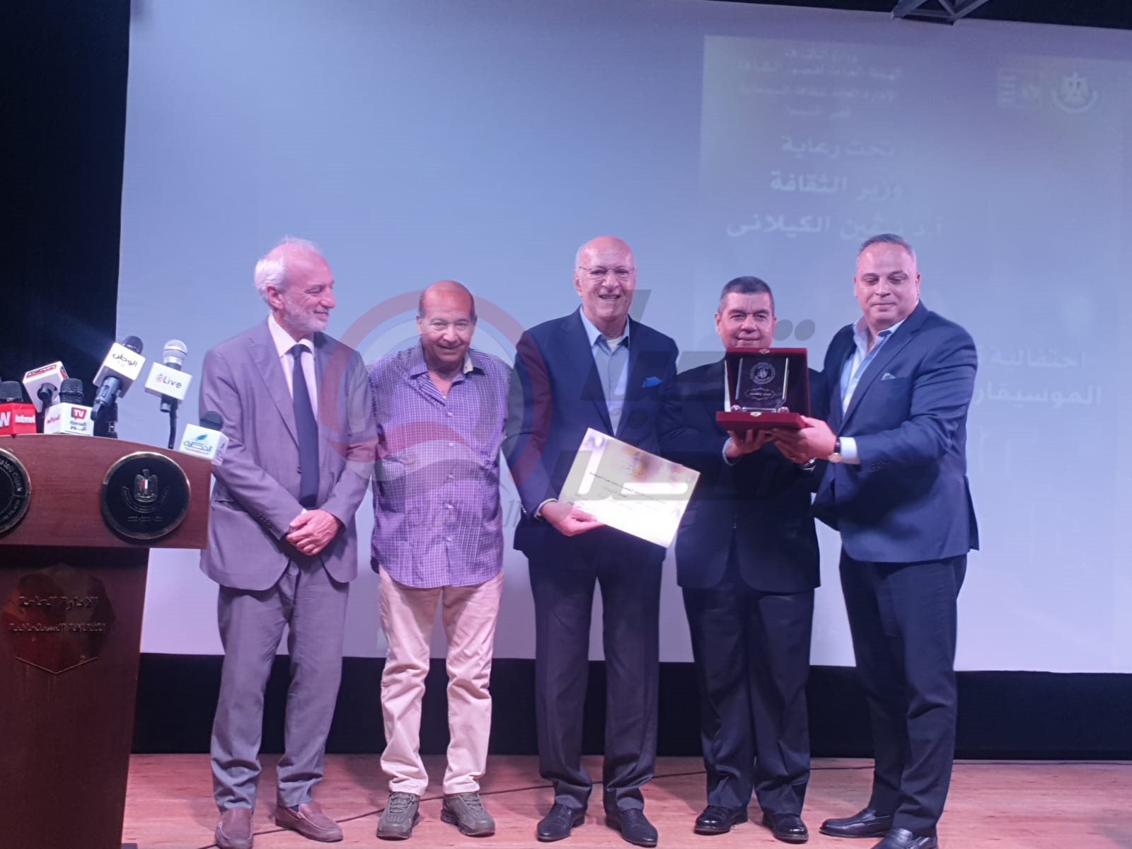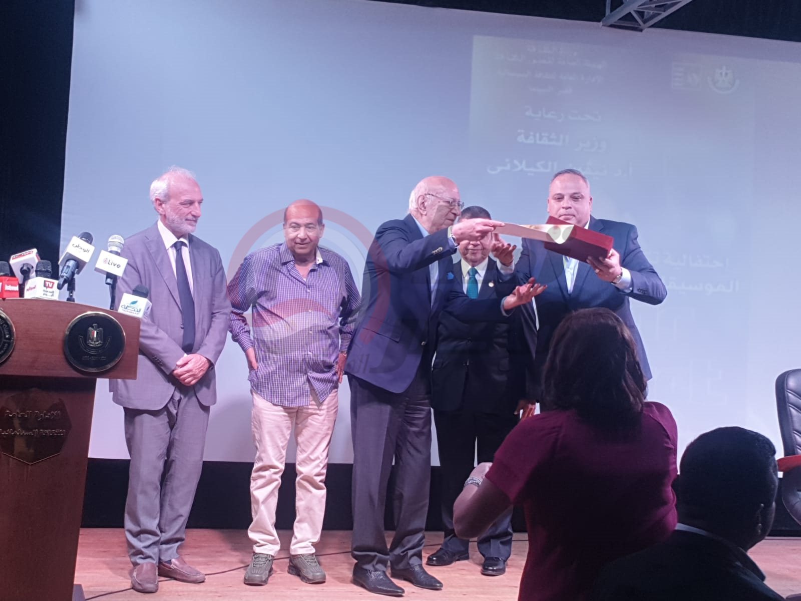 وسلم الفنان تامر عبد المنعم، رئيس قصر السينما، درع التكريم والشهادة التقديرية للموسيقار عمر خيرت، في حضور عدد من الشخصيات الفنية العامة، منهم الناقد الفني طارق الشناوي.