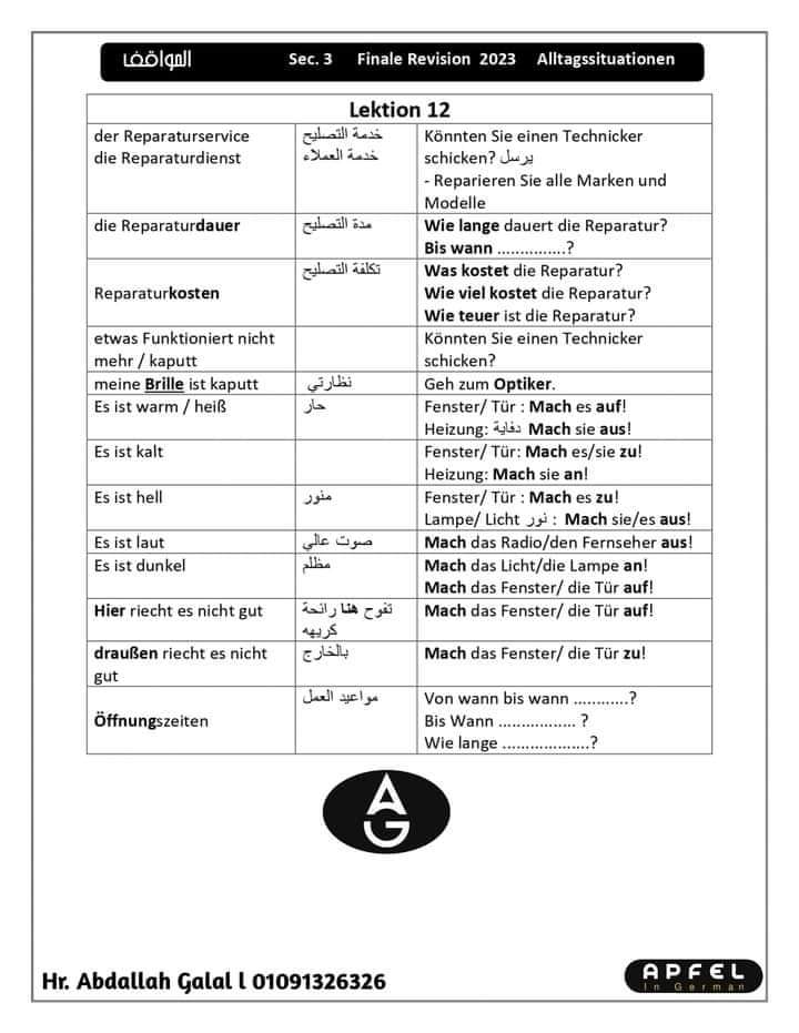 حيث قام أحد معلمى اللغة الألمانية للثانوية العامة بنشر أهم كلمات وتركات الألمانى للثانوية العامة 2023 والتى جاءت فى الصور التالية: