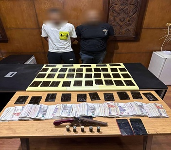 وعثرت أجهزة الأمن بحوزتهما على كمية من مخدر الحشيش وزنت 4,5 كيلو جرام – فرد خرطوش – عدد من الطلقات لذات العيار – مبلغ مالى – هاتف محمول، وبمواجهتهما إعترفا بحيازتهما للمواد المخدرة بقصد الإتجار والسلاح النارى بقصد الدفاع عن نشاطهما والمبلغ المالى من متحصلات البيع والهاتف المحمول لتسهيل الإتصال بعملائهما، وتم إتخاذ الإجراءات القانونية.
