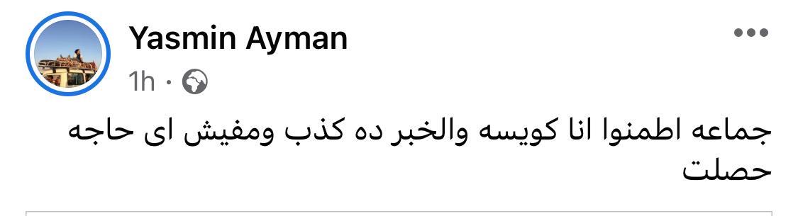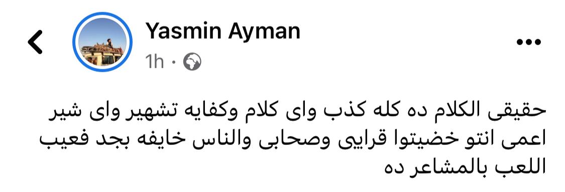 وتابعت: حقيقي الكلام ده كله كذب وأي كلام وكفاية تشهير وأي شير أعمى انتوا خضيتوا قرايبي وصحابي والناس خايفة بجد فعيب اللعب بالمشاعر ده.