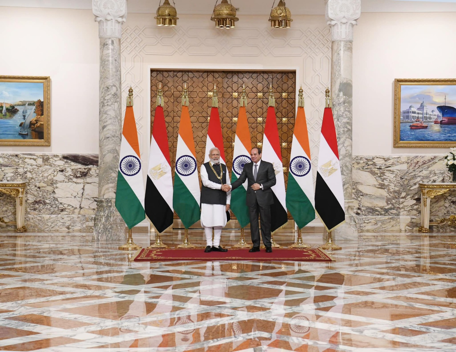 يسلط موقع تحيا مصر الضوء في تقريره التالي، على الأهمية الاستراتيجية الكبرى، لتلك الزيارة، والتي شهدت منح الرئيس السيسي، لرئيس الحكومة الهندية، قلادة النيل، التي تمثل أرفع الأوسمة المصرية وأعظمها شأنًا وقدرًا، حيث يساهم الرئيس عبدالفتاح السيسي في تقوية الروابط بين مصر والهند من خلال التركيز على التعاون في مجالات مختلفة وتوقيع اتفاقيات لتحقيق هذه الأهداف.