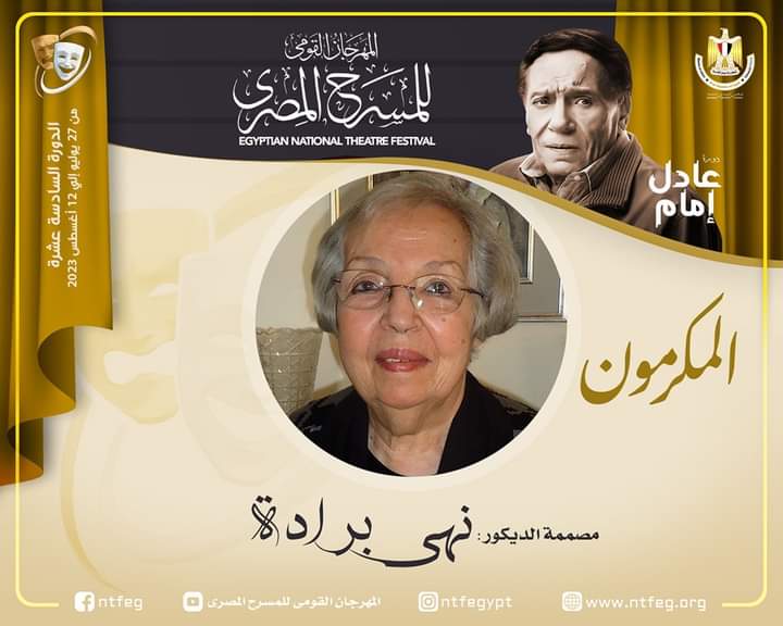 يستعد المهرجان القومي للمسرح المصري لـ تكريم رائدة الديكور المسرحي الفنانة التشكيلية نهى برادة، وذلك في دورته الجديدة التي تحمل رقم 16 والتي من المقرر إقامتها في يوم 27 من شهر يوليو الجاري وتستمر حتى 12 من شهر أغسطس.