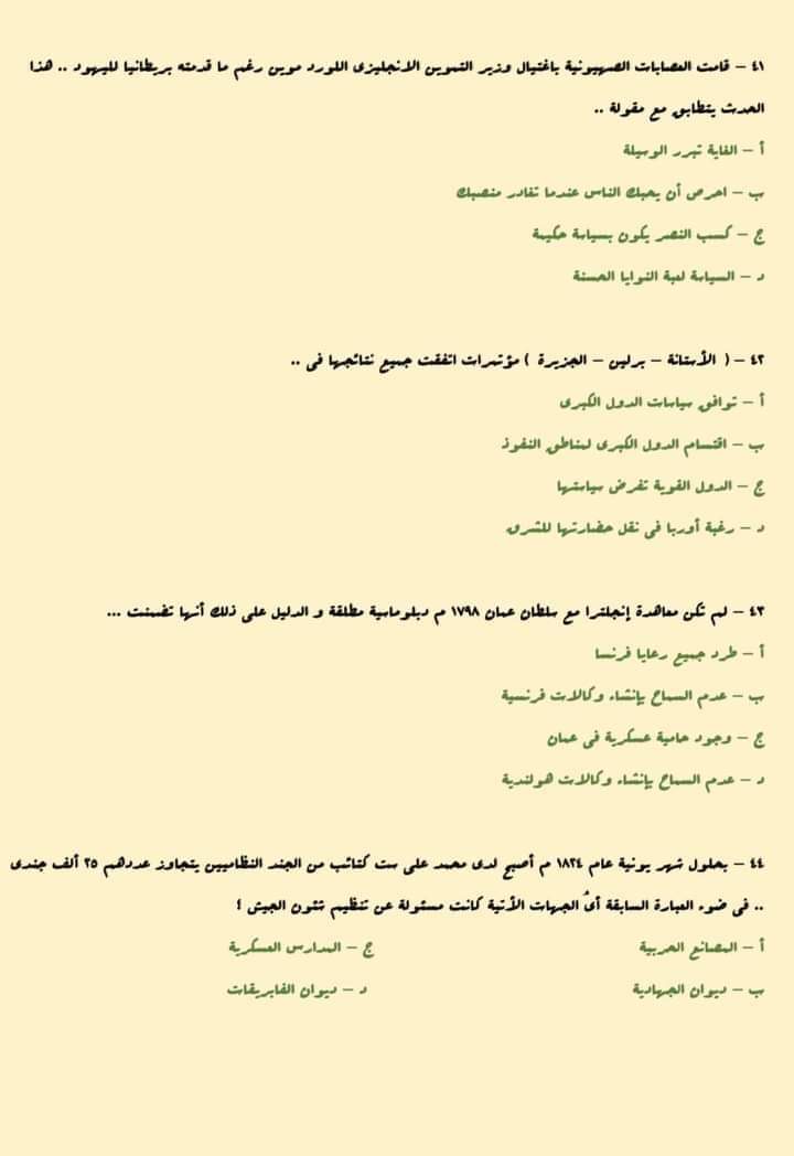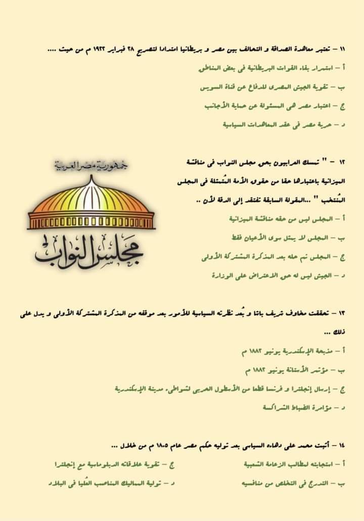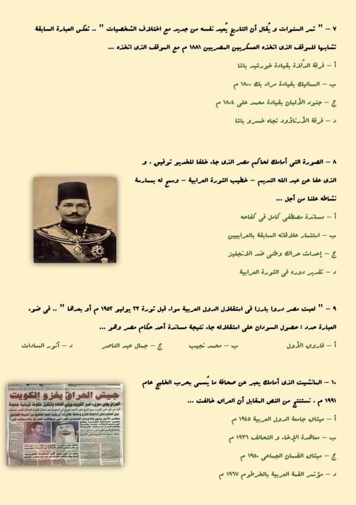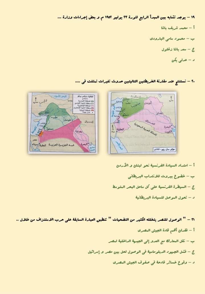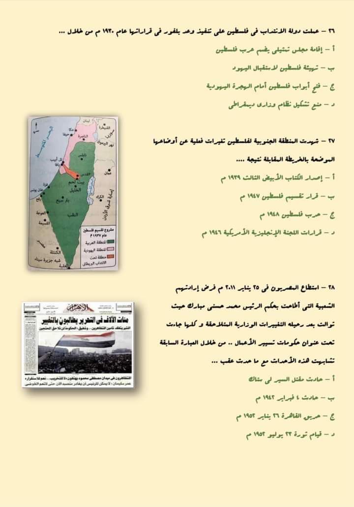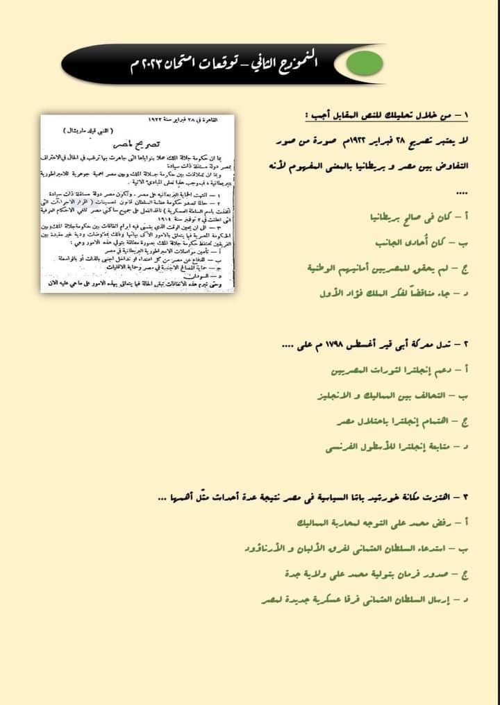 أسئلة متوقعة فى امتحان التاريخ للثانوية العامة 2023