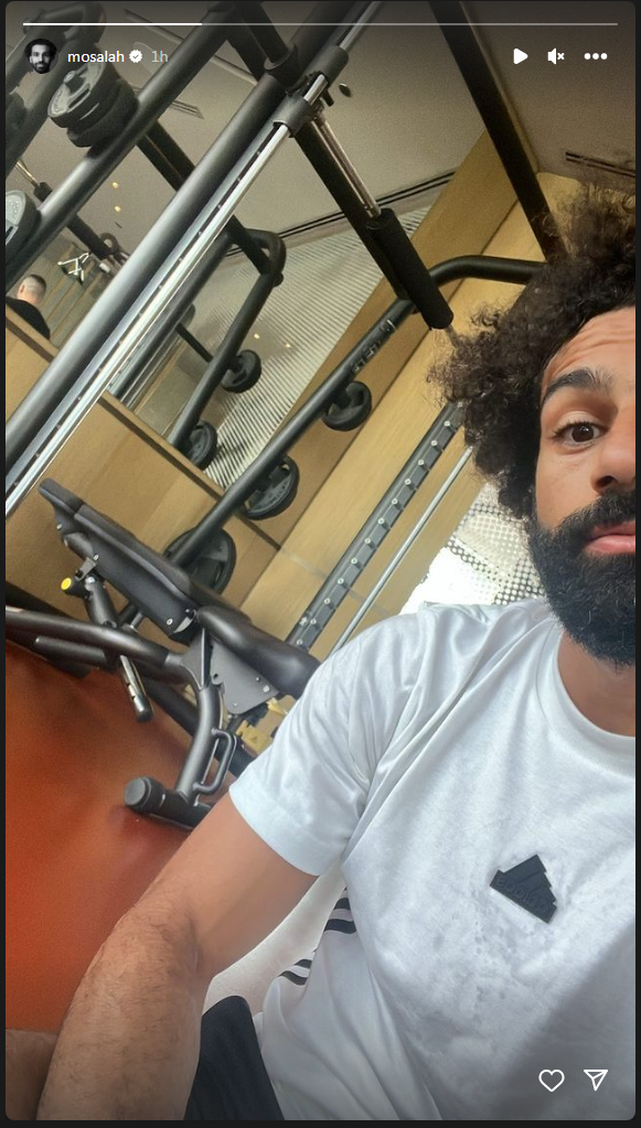 ونشر صلاح صورة عبر حسابه الشخصي على انستجرام خلال قيامه بالتدريبات داخل"الجيم".
