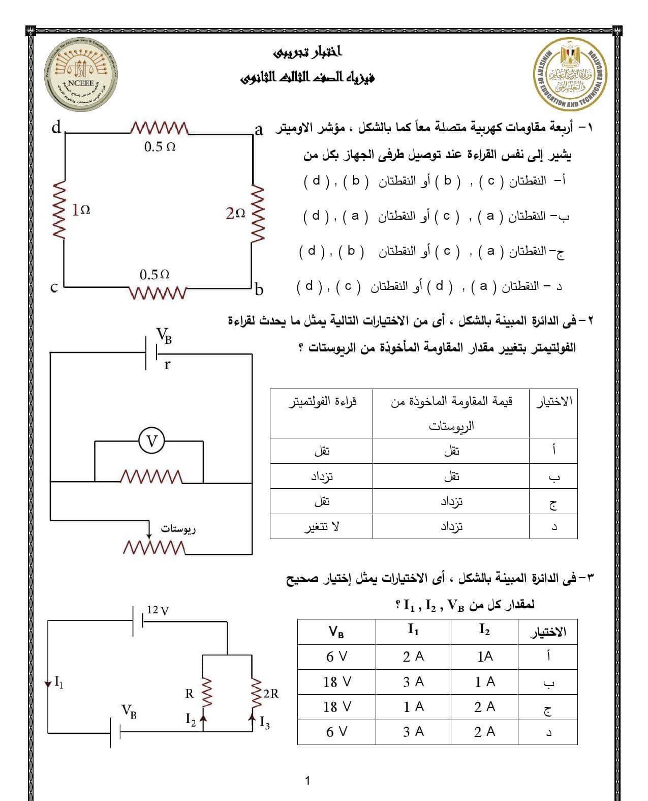 وللاطلاع على باقي النماذج الاسترشادية للوزارة بالإجابات الدخول من هنا
