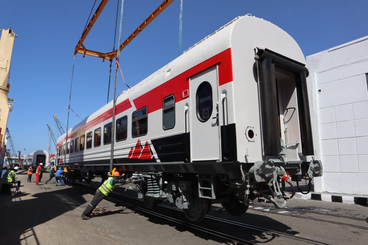 وزير النقل يعلن وصول 15 عربة درجة ثالثة مكيفة جديدة الى ميناء الإسكندرية قادمة من المجر